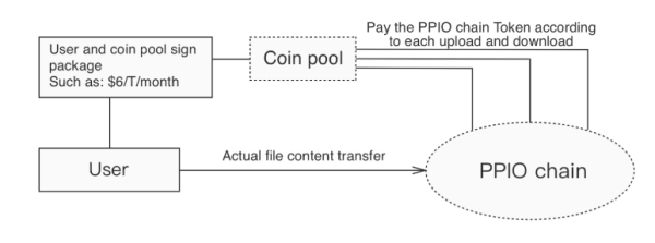 用户购买PPIO链上的存储服务套餐后,会按照约定的价格将PPIO币(比如一年多少空间的费用)提交给支付代理节点;